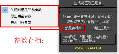 参数存档 由于每次重启插件后所有参数及指定的路径都将清空为默认状态,如果您需要反复测试同一个参数,请勾选“关闭时记住当前参数”,插件下次启动时将保留当前插件面板设置好的所有参数。 您也可以使用“导出当前参数”功能保存多套您心仪的参数设置,并在需要时通过“导入已存参数”导入。 |