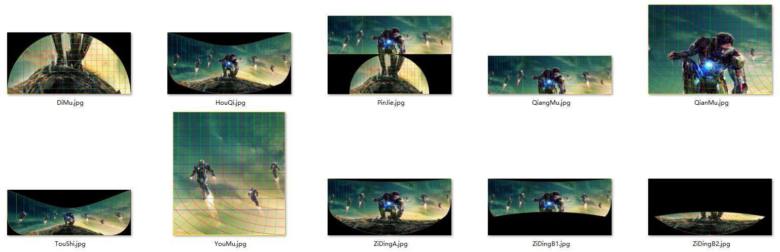 插件内提供了所有常见的投影图像输出格式,我们可以根据自己的硬件需求随意选择一种使用,如果插件内提供的投影格式仍旧不能满足您的投影需求,您也可以定制任意您需要的投影图像形式。 这里我们以常见的拼接输出形式为例,我们指定好拼接输出保存路径,点击序列输出,您就可以得到一张如图所示的拼接投影图。 |