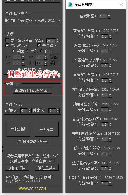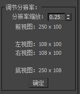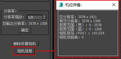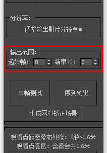 | 为了保证跟折幕矫正匹配的最佳画质,分辨率的长宽比是锁定的,但我们可以通过分辨率缩放对整体分辨率进行调整。请注意,由于折幕渲染画面是需要做裁剪的,所以Max渲染面板所显示的分辨率并非我们需要的渲染分辨率,当插件内勾选了自动裁剪时,渲染画面的分辨率将以该处标出为准。 | ![]() |