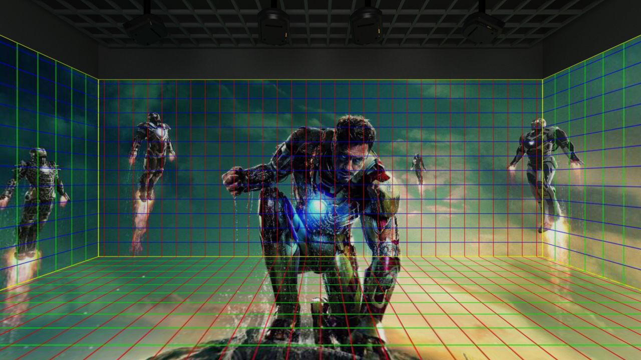 | “多相机分区渲染”使用多个方向切换渲染的形式将每个方向的幕布画面单独进行渲染,该渲染形式可以精确的卡准对每块幕布的图像,无论在制作过程,还是渲染的画面,都能保证与各方向的幕布最终投影画面无异,平面幕布不需要进行二次矫正,预览画面即是渲染画面,渲染画面即是投影画面,渲染制作完全没有损失。 | ||
