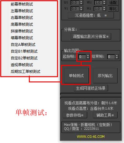 您也可以使用单帧测试功能测试一帧任意投影输出形式图。 单帧测试功能测试帧为输出范围内起始帧的帧数。 |