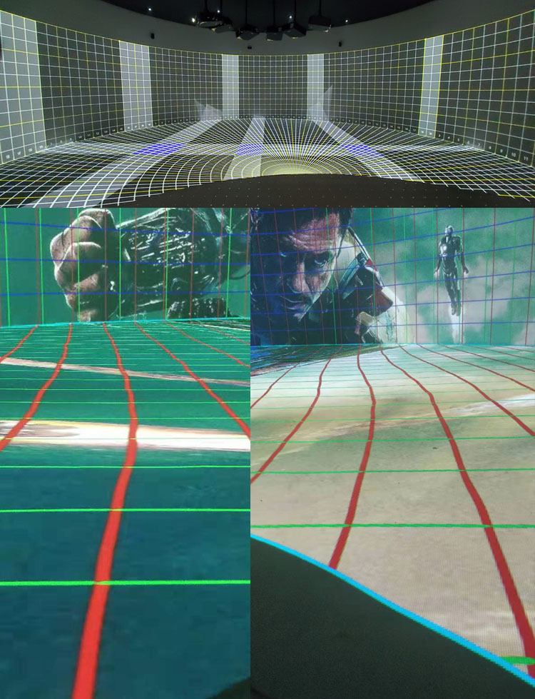 常规影片矫正模式:任意常规画面均可矫正,彻底解决了折幕制作的门槛。由于常规素材的拍摄焦距视场等不规范,矫正画面往往会存在一定的畸变。