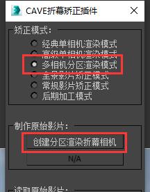 启动插件,在矫正模式内选择“多相机分区渲染模式”。 选择您所使用的相机,点击“创建分区渲染折幕相机”按钮。 |