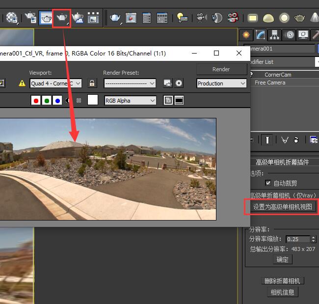 | 点击“创建经典折幕渲染相机”按钮。 | ![]() |