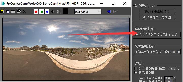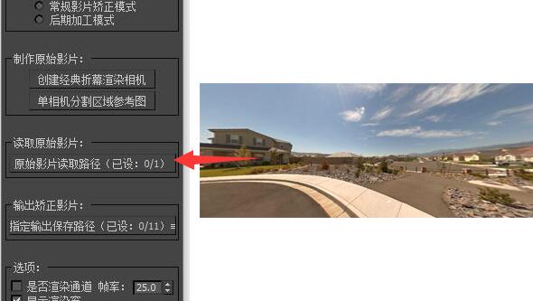 | 准备好全景图像,在矫正插件中“读取原始影片”栏中将全景图导入。 | ![]() |