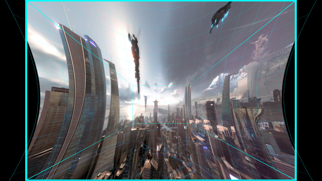 | “经典单相机渲染模式”是一种落后的折幕制作形式,但是由于它最为简单方便,且对后期加工方面比较友好,所以至今仍被广泛运用。“经典单相机模式”采用大广角相机的形式,以单个相机一己之力将整个幕布范围收纳眼底,由于广角的巨大从而将导致画面中心像素的严重缺失!尤其是将观看点设置得离幕布较近时,画面损失将非常严重。将观看点置于屏内就更加不可能了。但由于“经典单相机模式”只使用单个常规相机进行处理,后期加工可以做到与平常无异,所以当您需要进行大量的后期合成时,使用该模式仍旧是一个不错的选择。 | ||